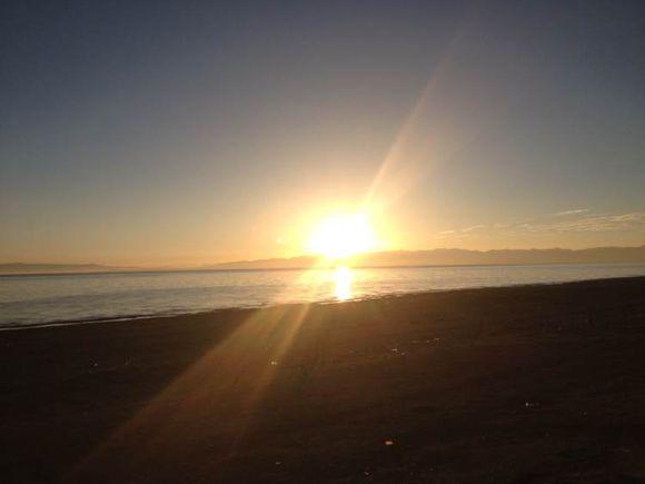 日出青海湖图片