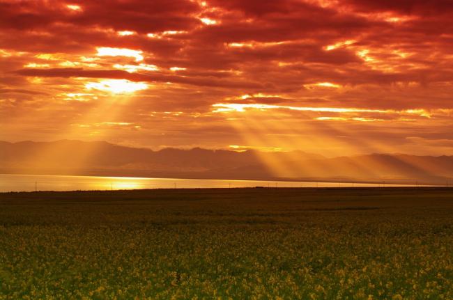 青海湖日出景色图片