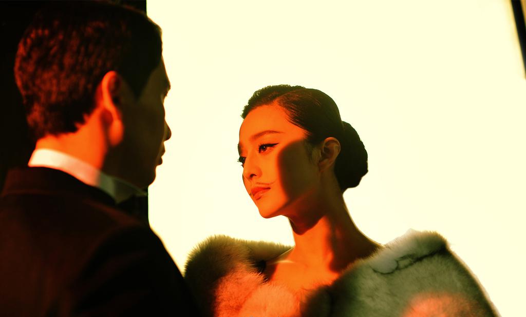 图集介绍:范冰冰东风雨剧照图片。大多扮演古装美女的范冰冰在电影东风雨中出演千变女特工,在剧照中不难看出,范冰冰在片中不仅以低胸装出镜,大秀火辣身材,还化身美艳歌女,一展舞姿。更为别致的是,范冰冰还画着两撇细细的胡子,美艳中带着一丝神秘色彩。
