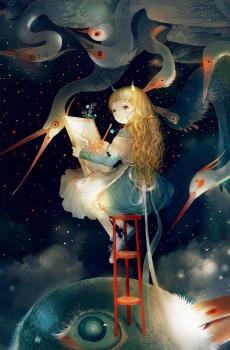 仙鹤与少女插画