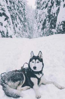 雪橇犬哈士奇雪地