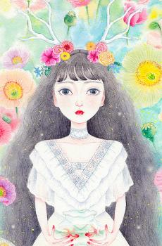 手绘插画美少女