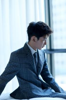 牛骏峰深蓝色丝绒质感西装写真